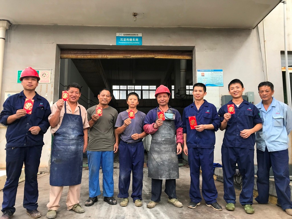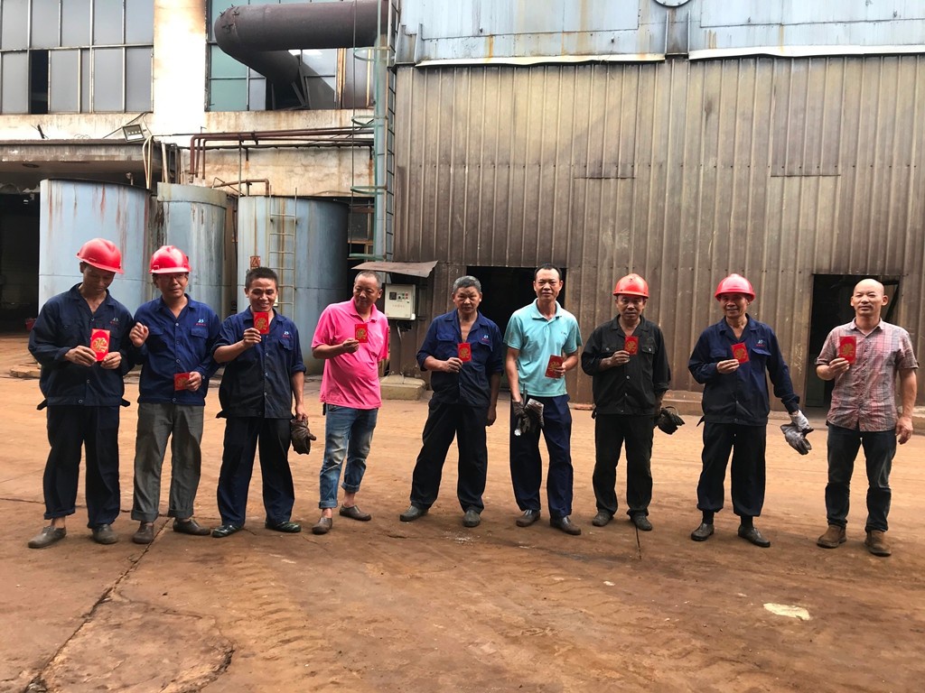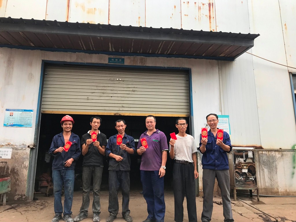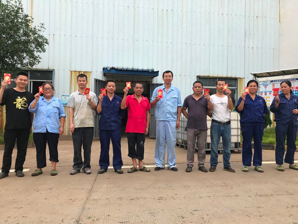 上圖為生產(chǎn)一線員工派發(fā)紅包